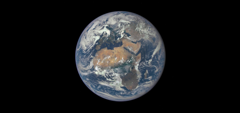 Η τρίτη στάση στο φανταστικό μας ταξίδι είναι το σπίτι μας, ο πλανήτης Γη. Η μέση απόσταση της Γης από το άστρο της ημέρας είναι περίπου 150 εκατομμύρια χιλιόμετρα, αυτό σημαίνει ότι θα πρέπει να κάνετε άλλα 28 βήματα εμπρός (συνολικά 93 βήματα από τον Ήλιο). Αξίζει να σημειωθεί ότι οι επιστήμονες χρησιμοποιούν την απόσταση Γης – Ήλιου ως αστρονομική μονάδα μέτρησης (Αστρονομική Μονάδα ή Astronomical Unit). Με αεροπλάνο θα φτάνατε από τον Ήλιο στη Γη σε 18 χρόνια και με αυτοκίνητο σε 152 χρόνια.
