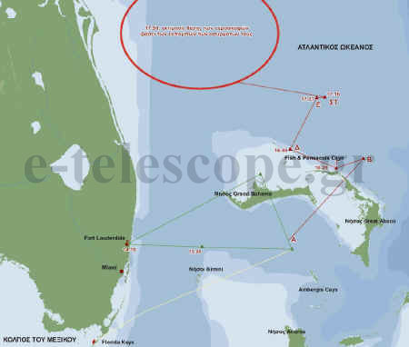 → με κόκκινη γραμμή η πορεία που πιθανότατα ακολούθησε η Πτήση 19