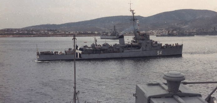 On January 1951 the ship was delivered to the Greek Navy as part of the military aid program, along with three other Cannon destroyers. These four ships became known in the Greek Navy as the "four beasts" because of the names they were given: Aetos (Eagle), Ierax (Hawk), Panthir (Panther) and Leon (Lion). Two of these ships would become well known in the years to come. Aetos "stared" in some movies (The guns of Navarone among them) and Leon, D-54, as the ex DE-173 Eldridge, or the Philadelphia Experiment ship.