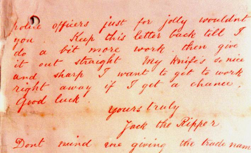 Είναι σχεδόν βέβαιο πώς ένας από τους λόγους που η ιστορία αυτών των φριχτών φόνων εκδιδομένων γυναικών απέκτησε τη φήμη της και περιτυλίχθηκε σε μυστήριο, ήταν και το όνομα «Jack ο Αντεροβγάλτης». Το όνομα είναι εύκολο να εξηγηθεί. Ήταν γραμμένο στο τέλος μιας επιστολής, με ημερομηνία 25 Σεπτεμβρίου 1888, η οποία εστάλη στο Κεντρικό Πρακτορείο Ειδήσεων στις 27 Σεπτεμβρίου 1888. Από εκεί προωθήθηκε στη Μητροπολιτική Αστυνομία στις 29 Σεπτεμβρίου.